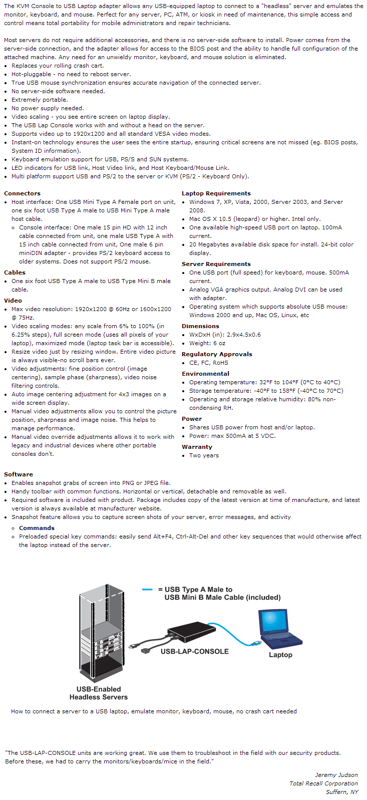 KVM Console to USB 2.0 Portable Laptop Adapter