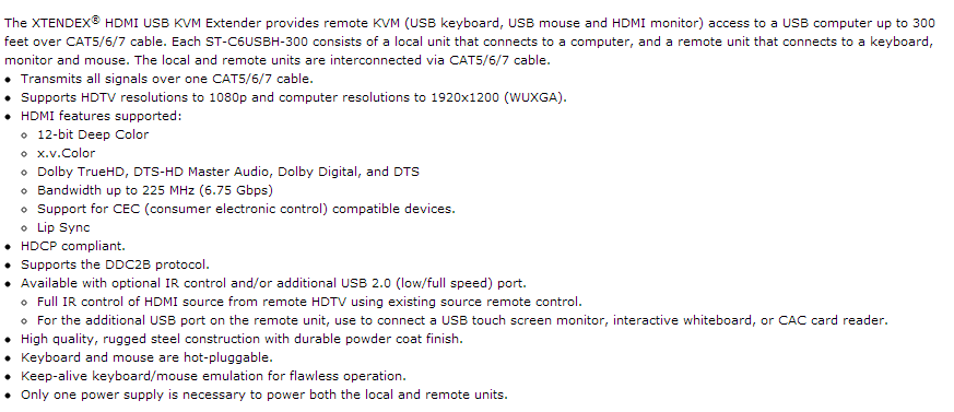 HDMI USB KVM Extender with IR Option via One CAT5/6/7 Data Sheet