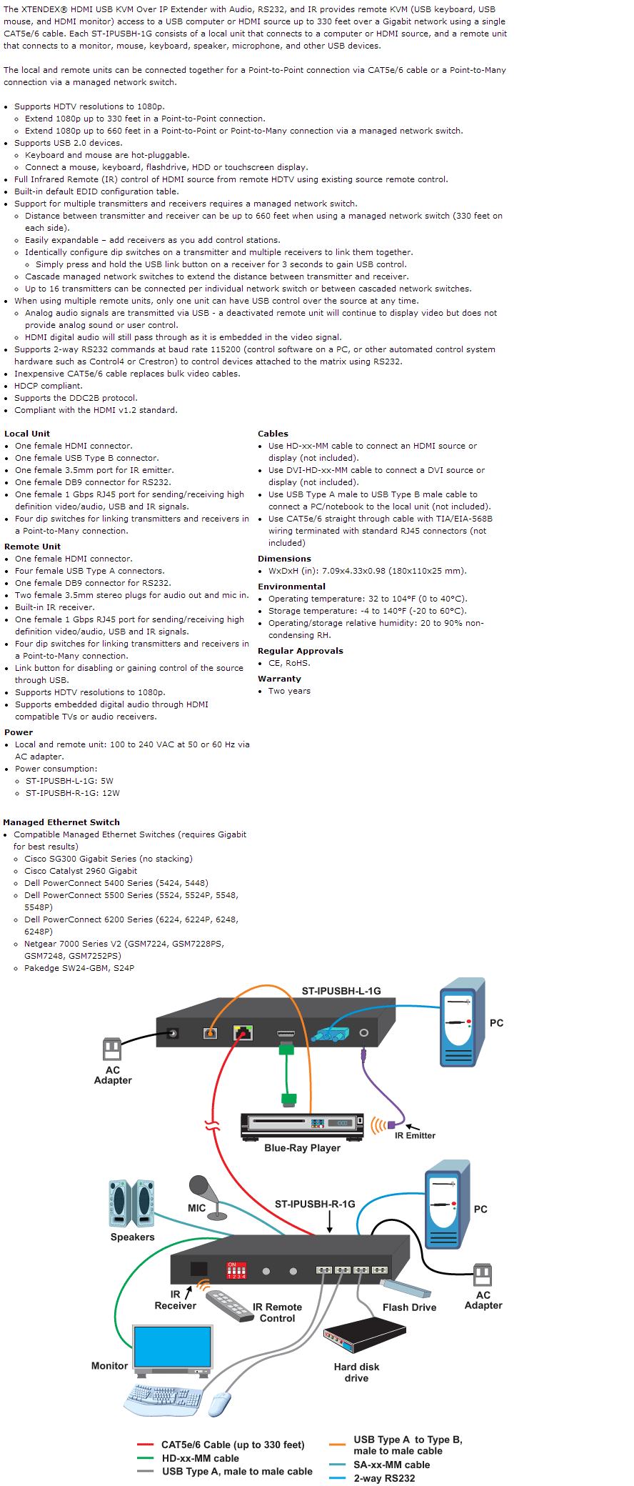 HDMI USB KVM Over IP Extender with Audio, RS232, and IR