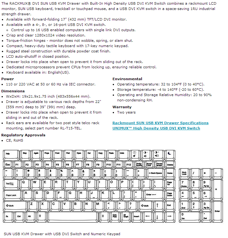 rackmount SUN USB kvm drawer with USB DVI KVM Switch