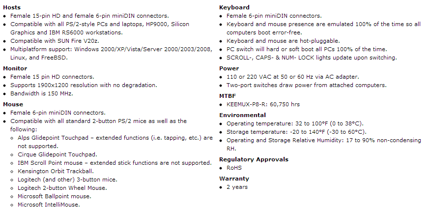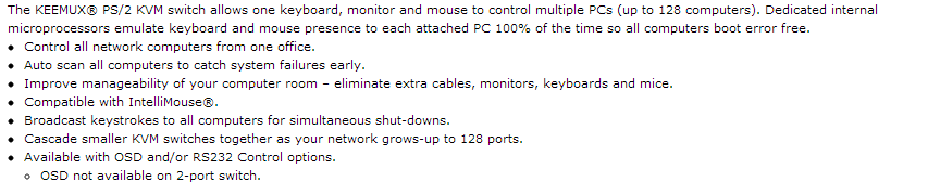 PS/2 KVM Server Switch with OSD, and RS232 Control Options