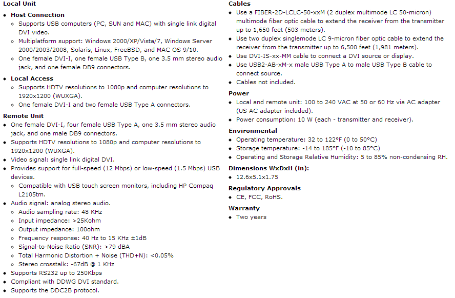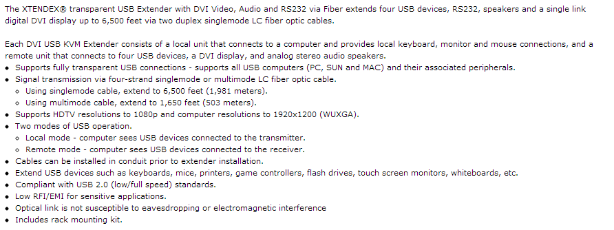 Transparent USB Extender with DVI Video, Audio and RS232 via Fiber