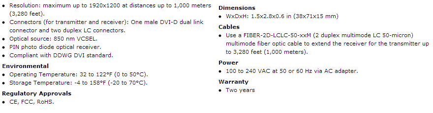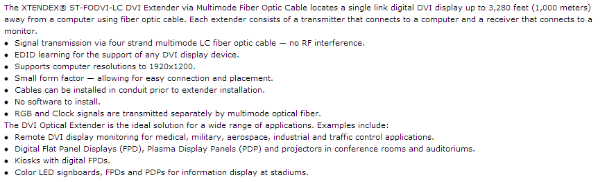 DVI Extender via Multimode Fiber Optic Cable