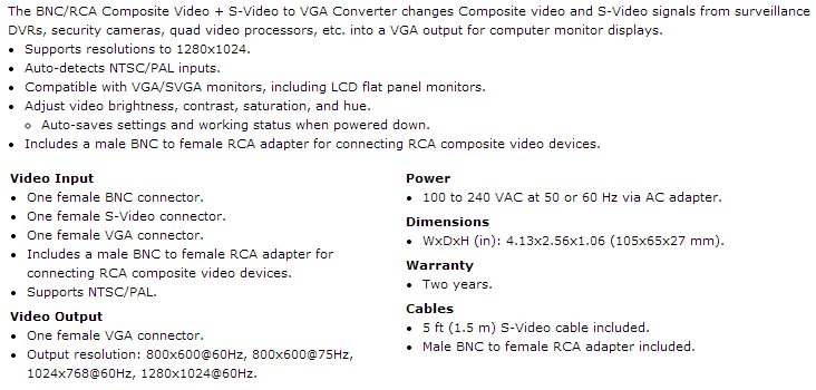 converter, BNC composite & S-Video converter