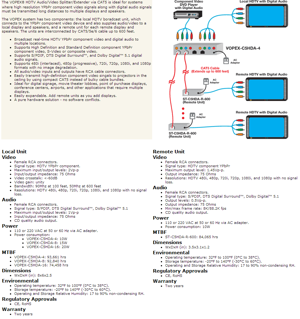 VOPEX-C5HDA-16 and ST-C5HDA-R-600 Remote Unit