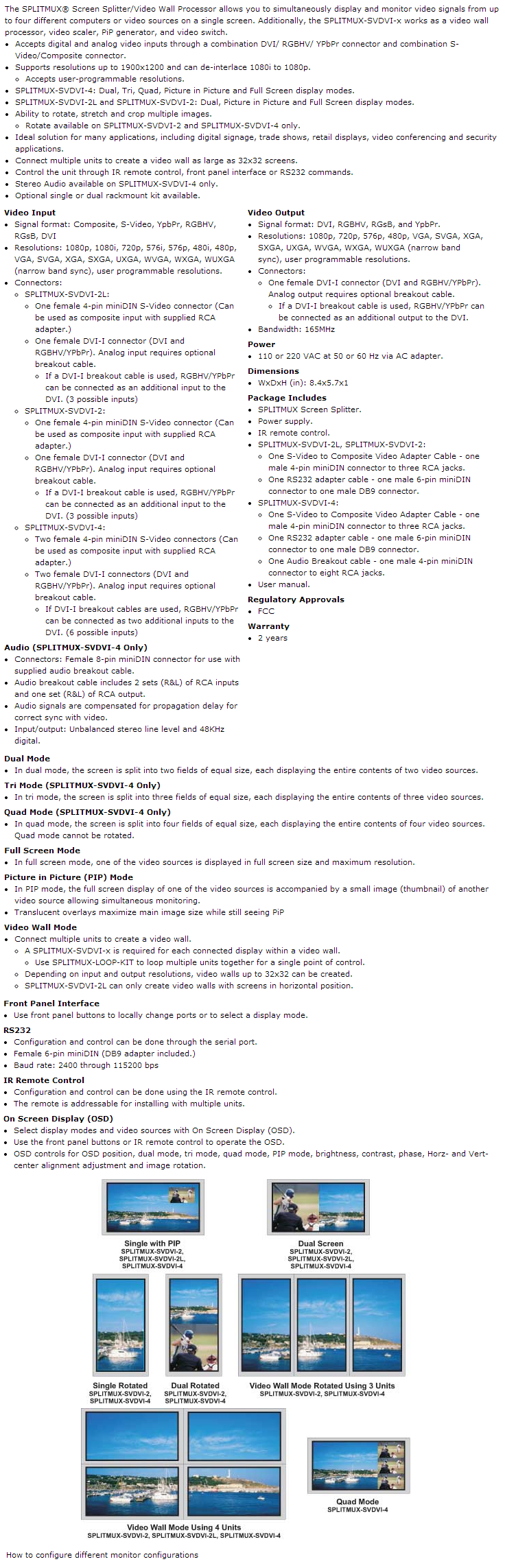 SPLITMUX-SVDVI-4 — Quad Screen Splitter / Video Wall Processor Manual