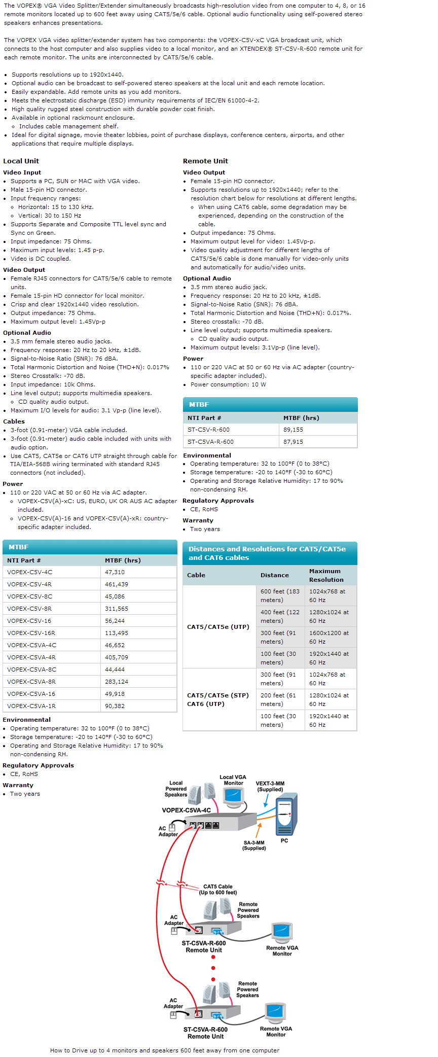 VOPEX-C5VA-4C Local Unit and ST-C5VA-600 Remote Unit