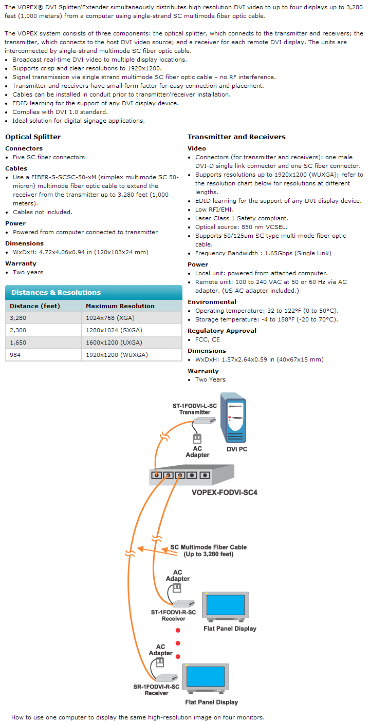 DVI Splitter/Extender via Multimode Fiber Optic Cable