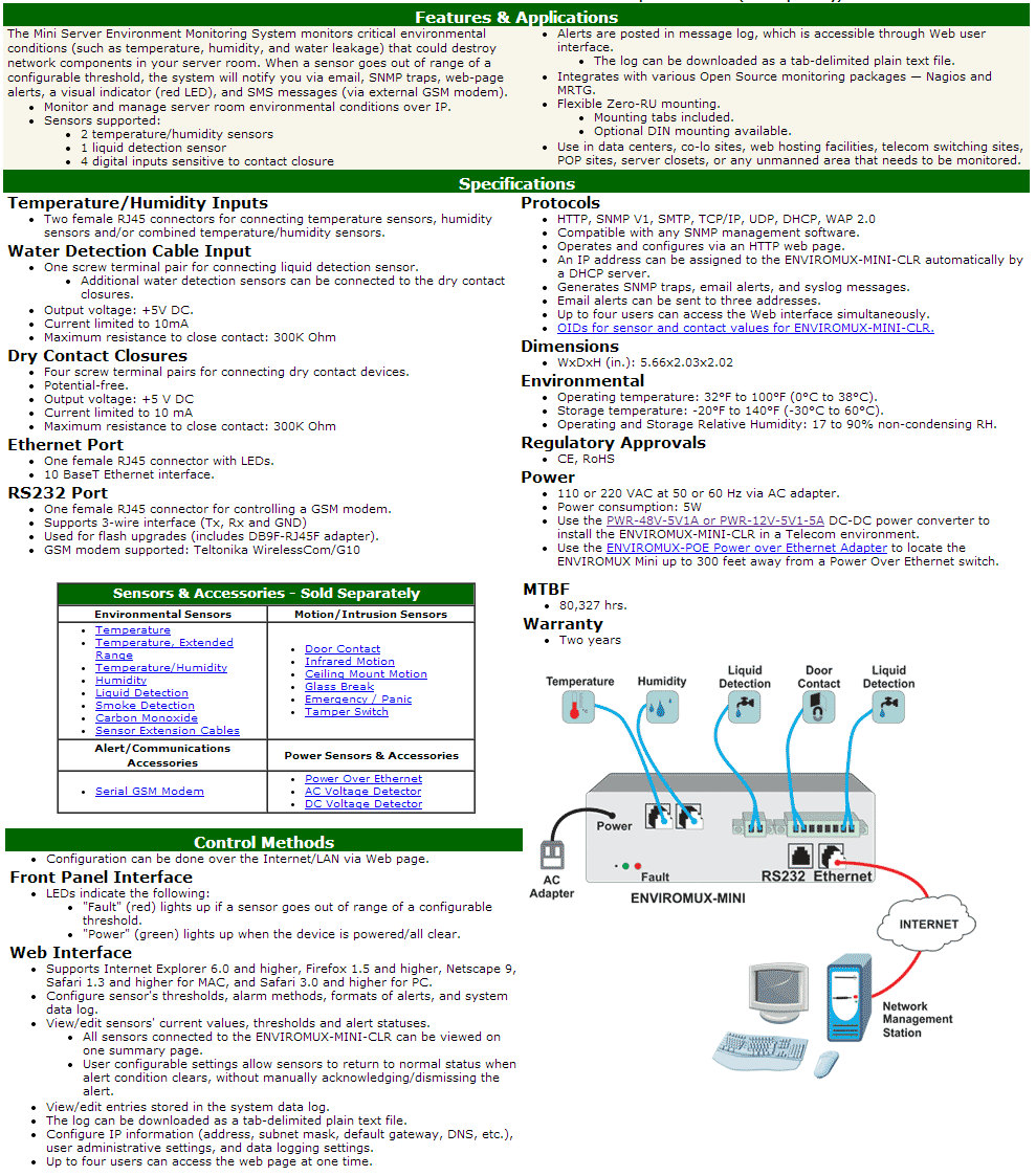 ENVIROMUX-MINI-CLR with ENVIROMUX-T-3 Temperature Sensor