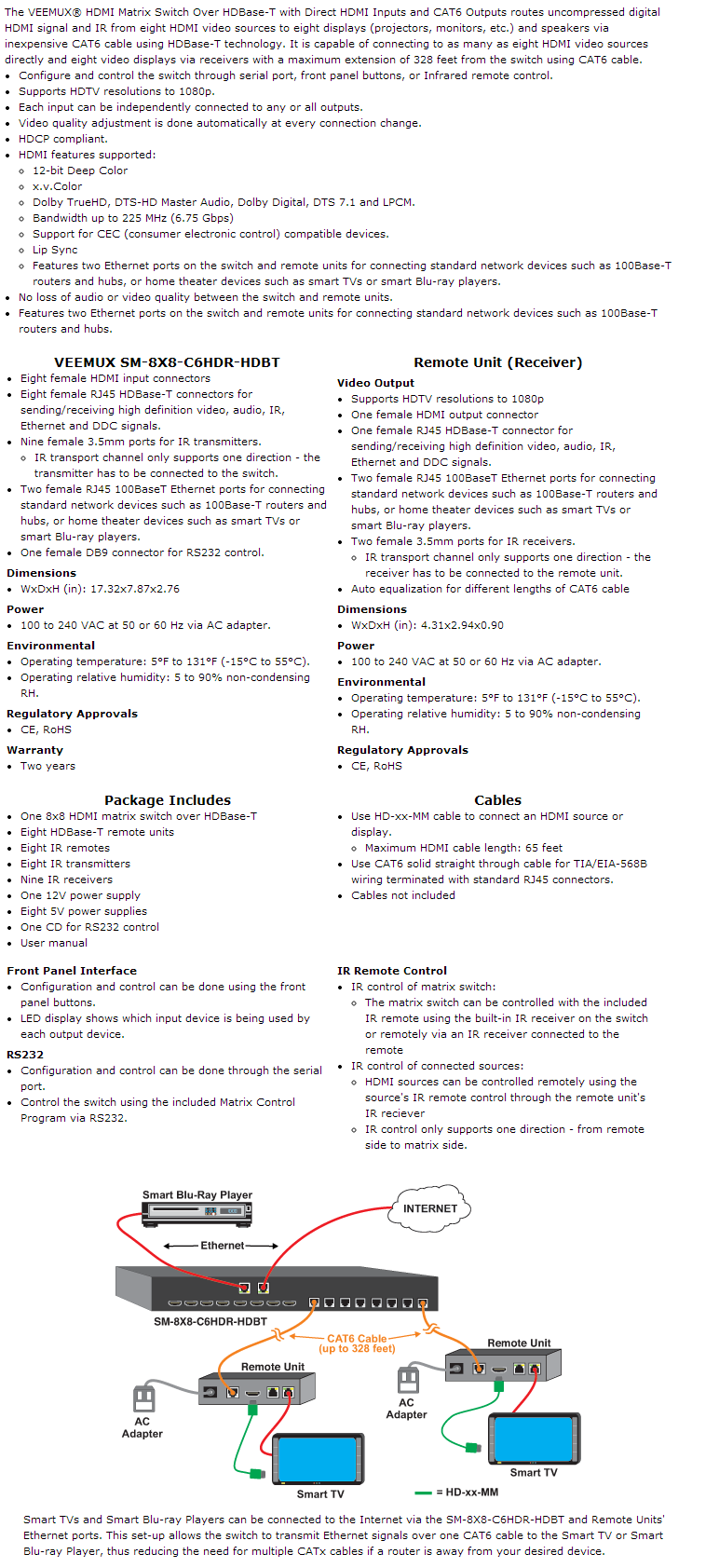 VEEMUX® SM-8X8-C6HDR-HDBT
