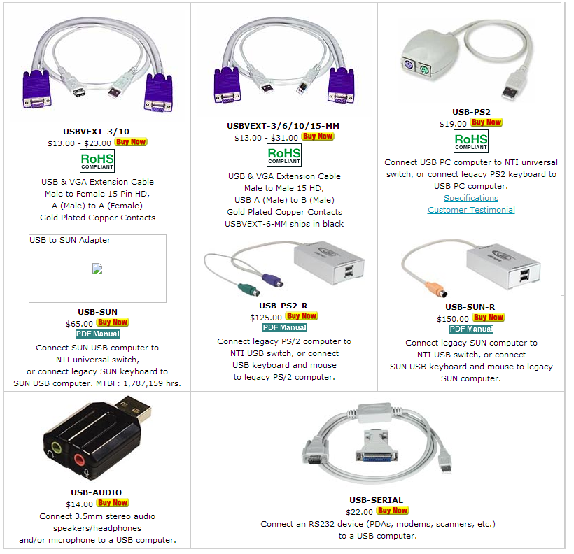 USB VGA Cable, USB PS2 SUN Adapter